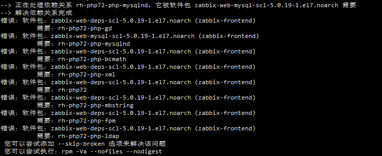 [root@monitor ~]# yum install zabbix-web-mysql-scl zabbix-apache-conf-scl -y如出现以下报错,需要先安装一下centos的仓库: yum install centos-release-scl -y 再执行上一条命令
