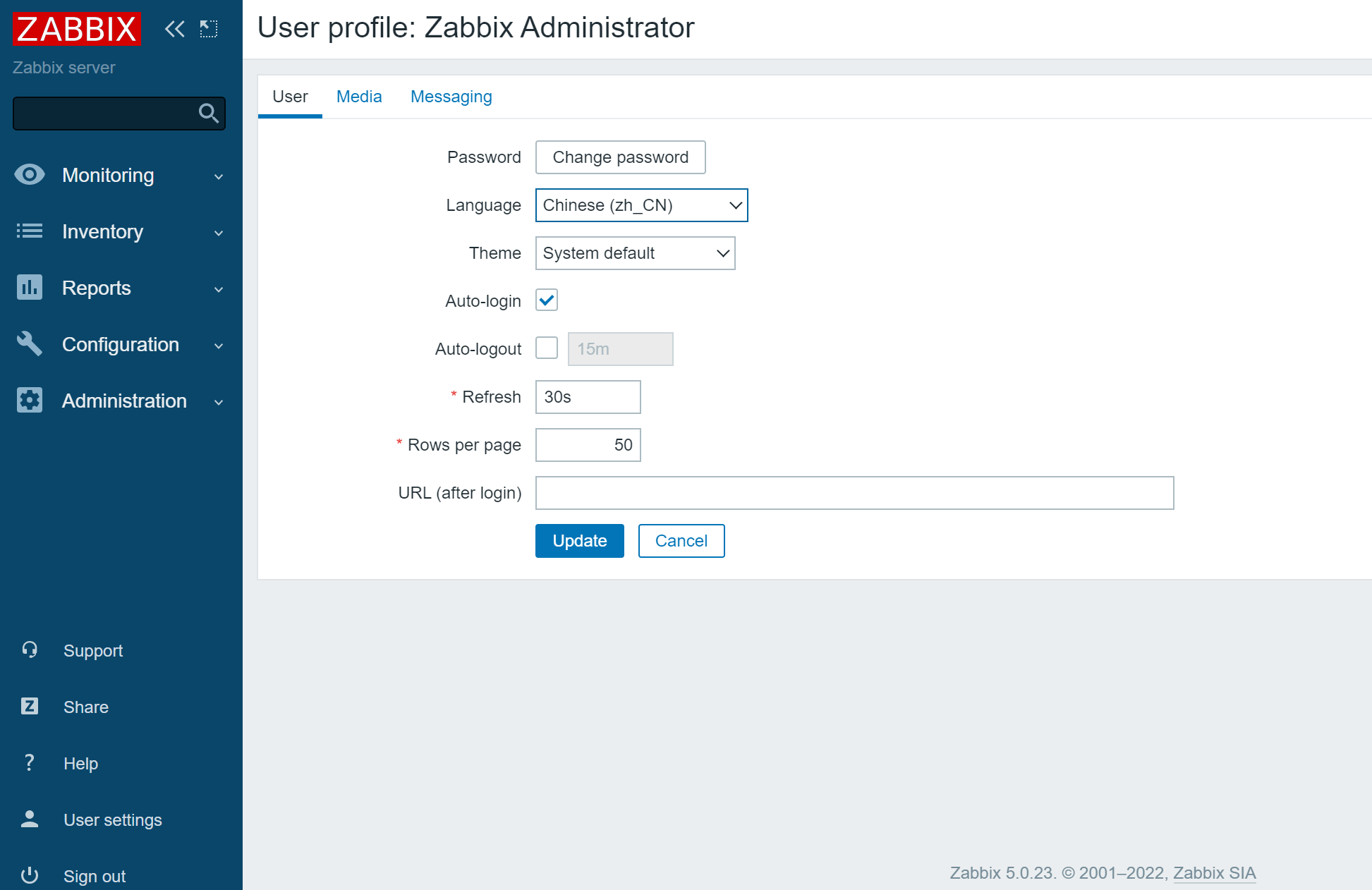 登录zabbix,默认用户名为:Admin,密码为:zabbix