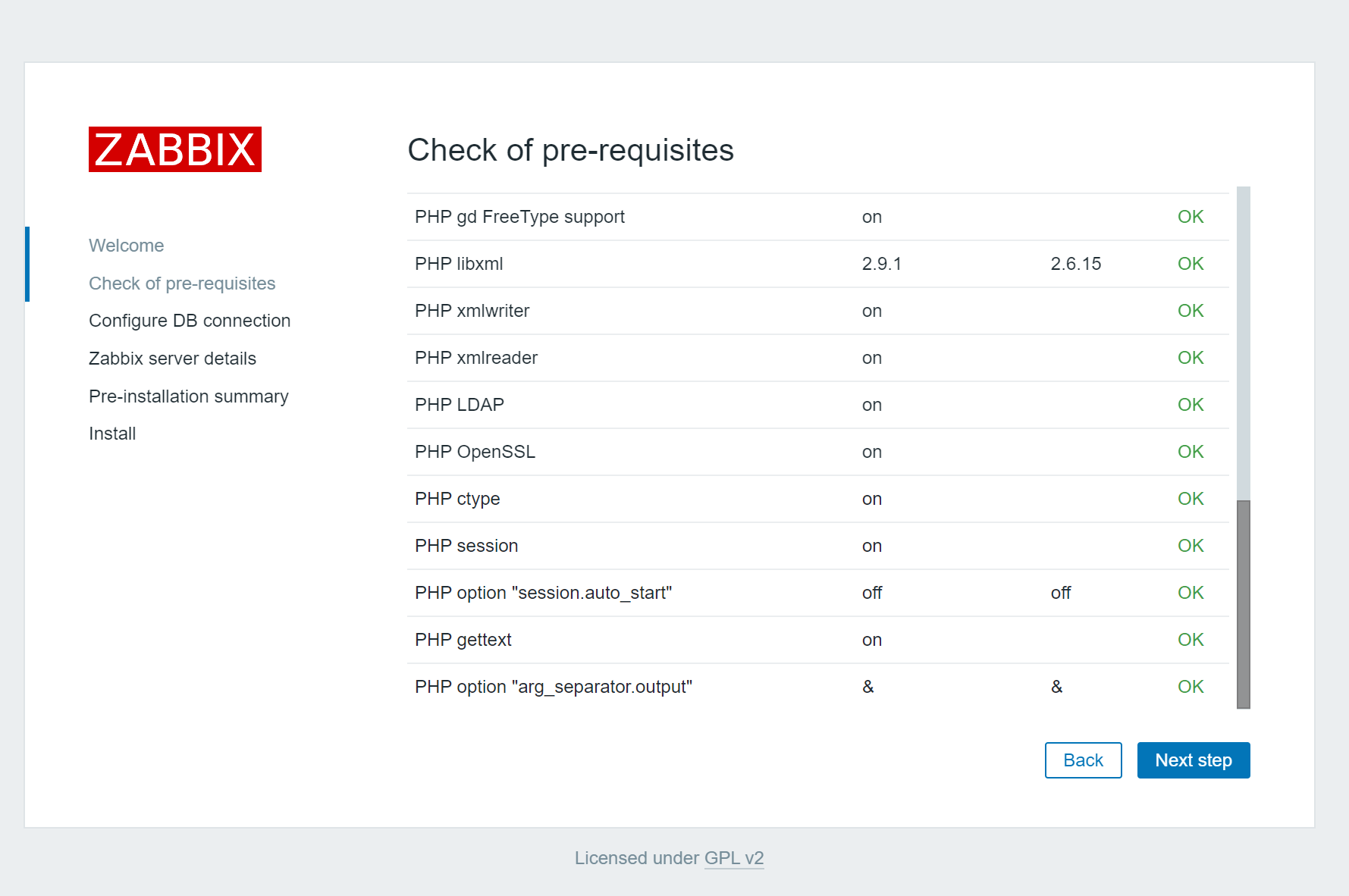 自动检查环境,所有选项都为OK则点击Next step进行下一步