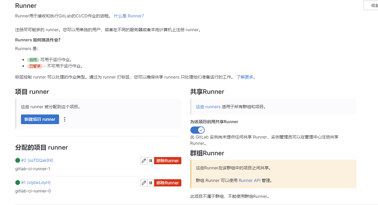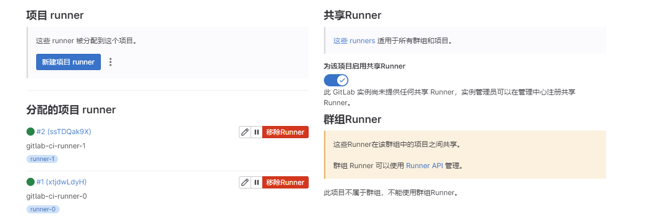 此时登录Gitlab查看Runner信息,发现就已经将这2个pod节点添加进来了