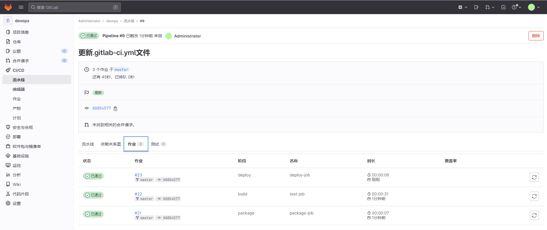 在代码仓库中添加 .gitlab-ci.yml文件,这里仅展示了基本格式